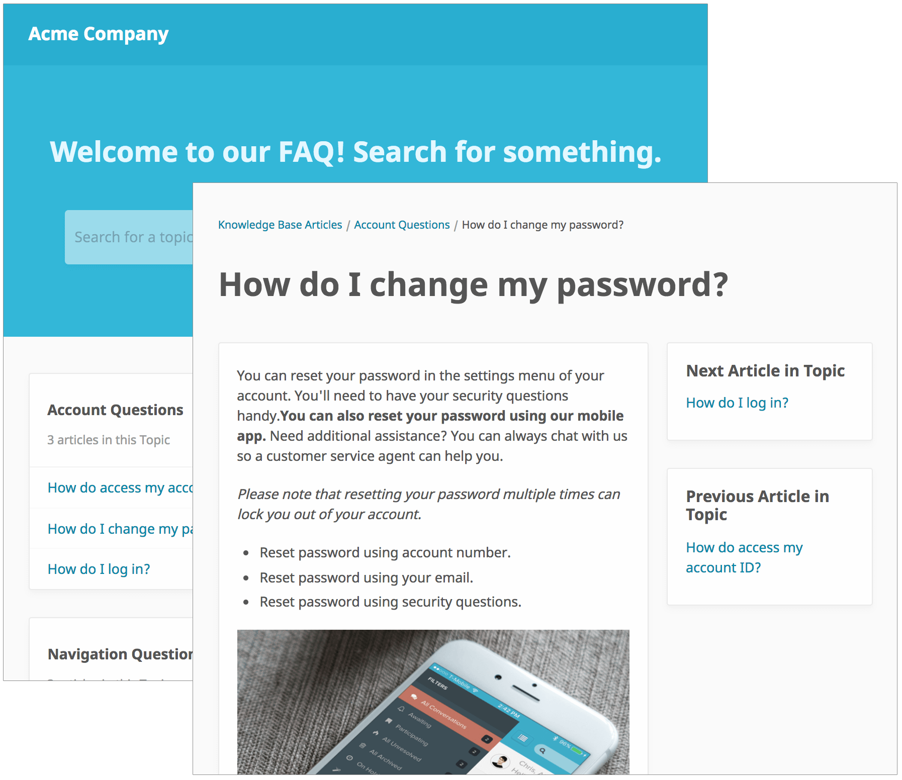Customizable and embeddable FAQ center to help customers help themselves.